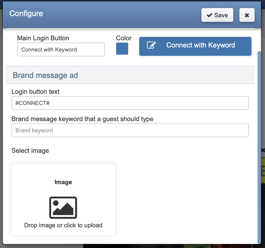 Here is required to select image ad and enter Brand message keyword that a guest should type on the Splash page.