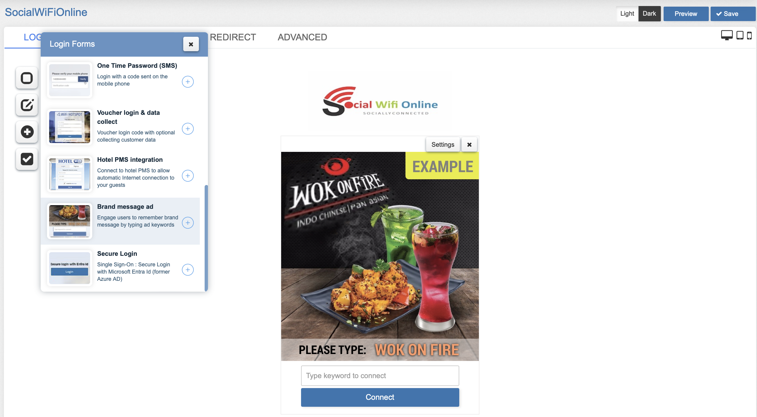 When you click on the + button, this login form will be added as the access method.