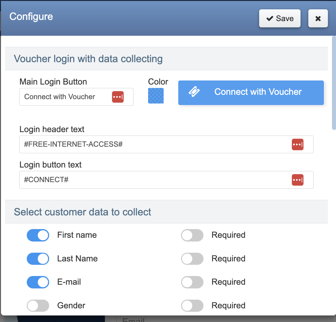 Voucher login & data collect can be configured from the Settings page configuration menu.